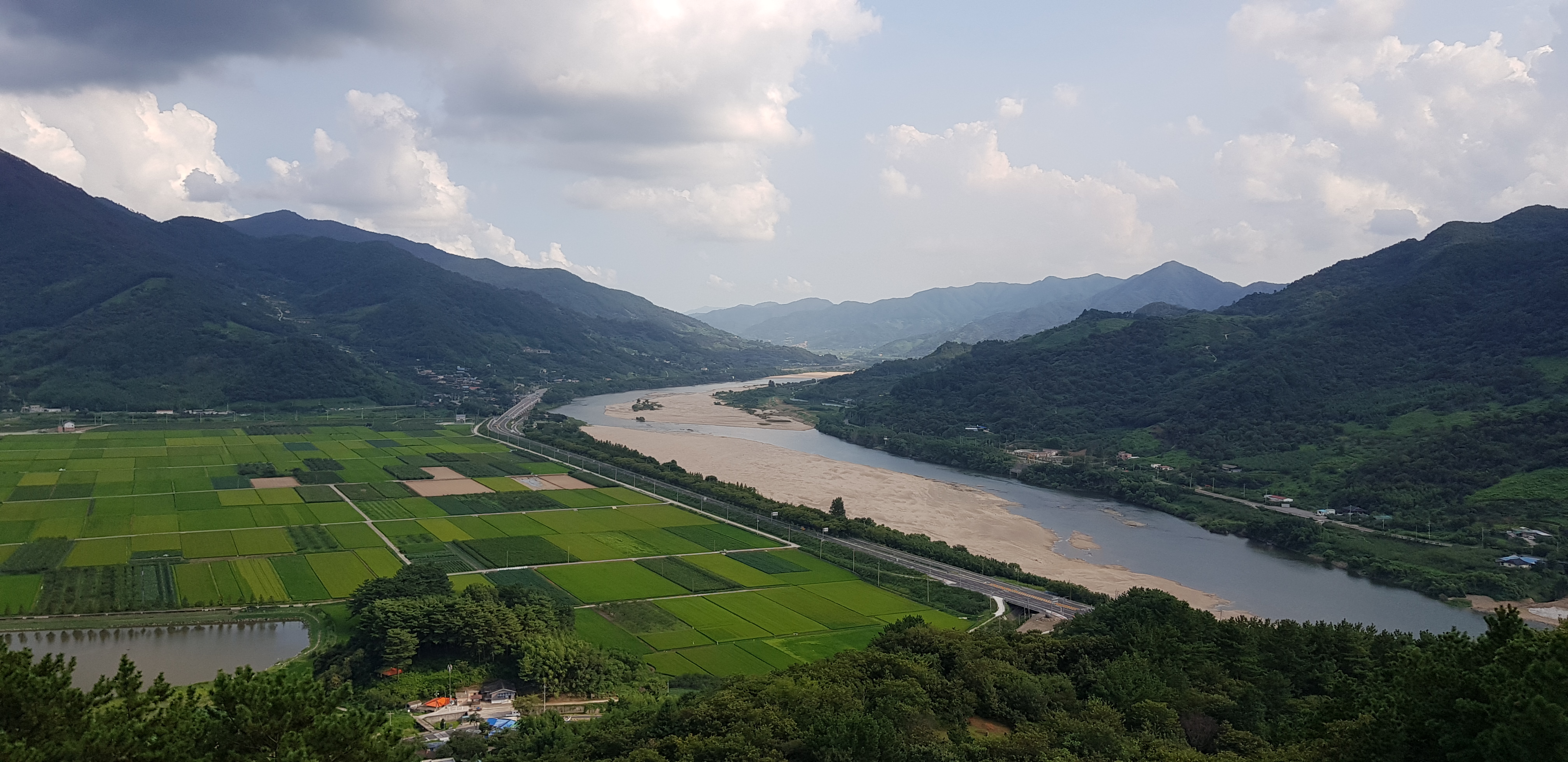 평사리 스카이웨이에서 석양의 악양들 섬진강