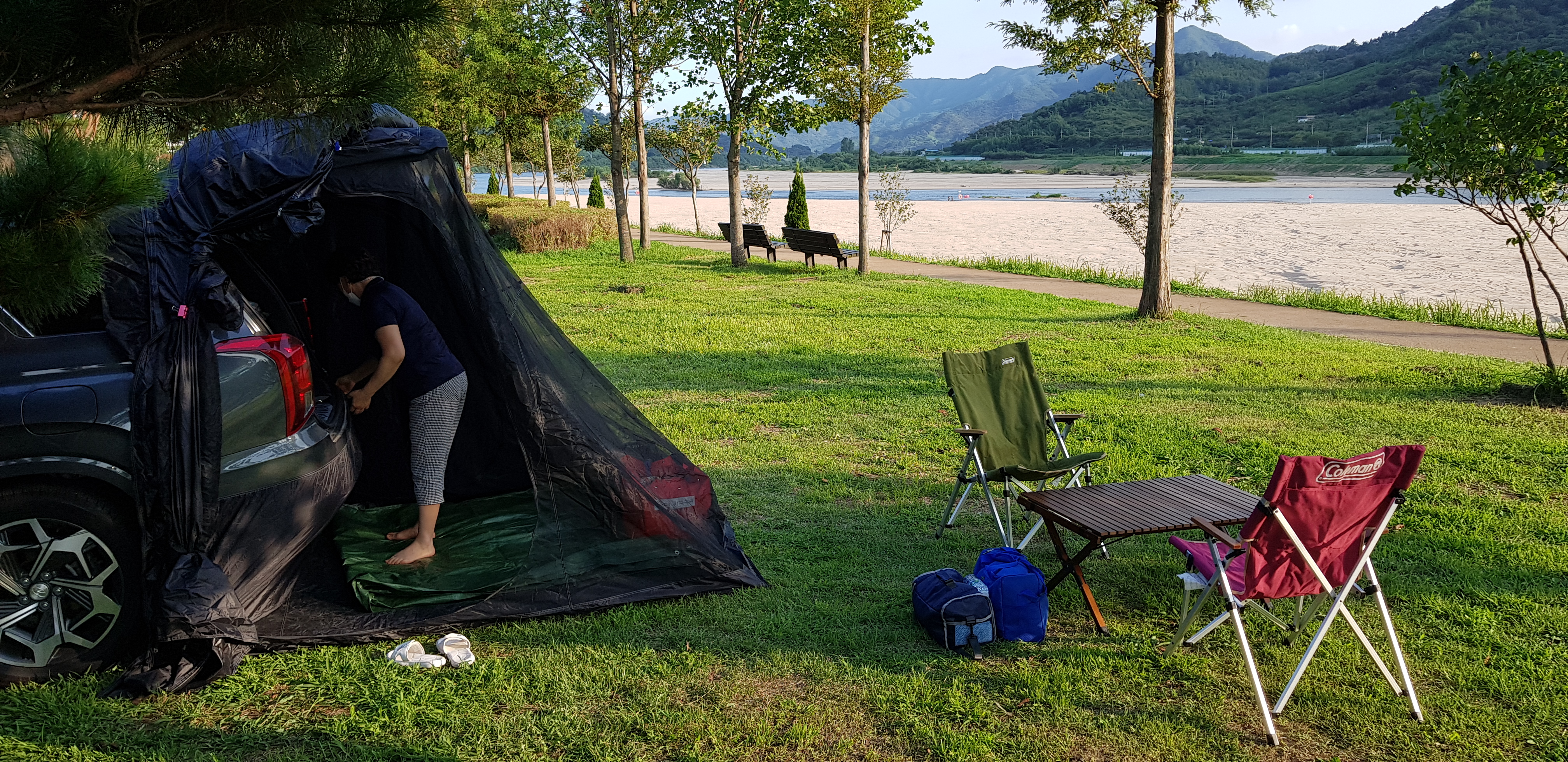 경치감상하고 평사리캠핑장에서 차박